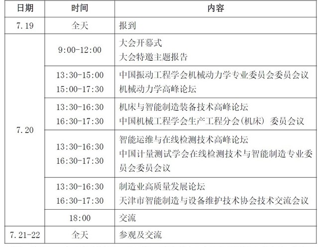 主办单位:中国振动工程学会机械动力学专业委员会、中国机械工程学会生产工程分会(机床)、中国计量测试学会在线检测技术与智能制造专业委员会、天津市智能制造与设备维护技术协会
